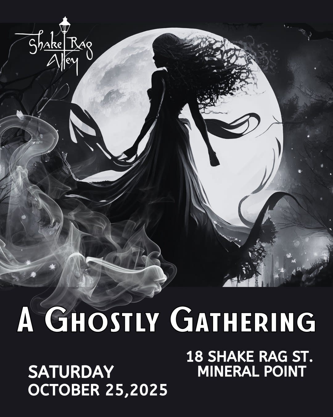 Channel your inner femme fatale and wise crack your way through the evening at Shake Rag Alley’s fifth annual Ghostly Gathering on Oct. 25. Gates open at 5:30 p.m. for this freakishly fun fall evening with a noir theme. The event features a variety of festive experiences on the 2.5-acre campus in the historic heart of Mineral Point. Entertainment includes live music with Minneapolis-based Smokin' Joe & Qlivia, a rope suspension & wax show with Miss Mega, tarot readings, and a Night Market. Food options will be available, including Pie Chart Pizza truck, ice cream from The Sweet Life Cream Parlor, sweet & savory bites by Wild Blue Yonder Coffee House, and wicked s’mores at the forge. Show up costumed for the fun and have a chance to win a cash prize in either the individual or group category. A Ghostly Gathering celebrates the ephemeral, the uncanny, the witchy and wonderful about the season. General admission tickets are $25 in advance and $30 at the door. All ticket sales are final. This is a rain or snow or shine event. The fall fundraiser supports Shake Rag Alley’s programming and mission. The Night Market brings together unique crafters, artists & artisans, makers of autumn and Halloween-themed items, and anyone whose wares are ready for this special event and its magical, haunted, or disguised patrons. There are vendor spots still available for the Night Market. Business sponsorships are available to support community programming and the arts. Volunteers can join in the fun of decorating the campus and assisting at the event. For more information, visit https://shakeragalley.org/ghostly-gathering/ or call (608) 987-3292. Note: This evening is not recommended for children. Shake Rag Alley’s family-friendly Trick’r Treat night will be held on October 31, after the Halloween parade!Images