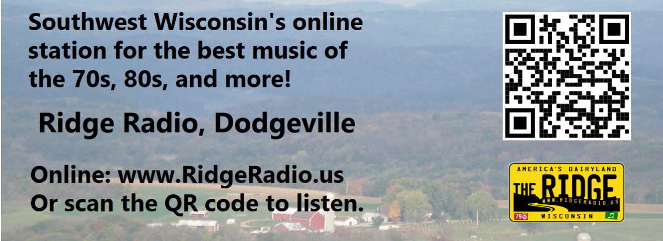 "The Ridge" is southwest Wisconsin's online music station playing great tunes of the 70s and 80s. Elton John, Billy Joel, The Commodores, Fleetwood Mac, Chicago, and more. Weather updates from former NBC15 forecaster Amy Carlson, and no 5-minute-long commercial breaks. Listen at https://RidgeRadio.us or on the Live365 app.