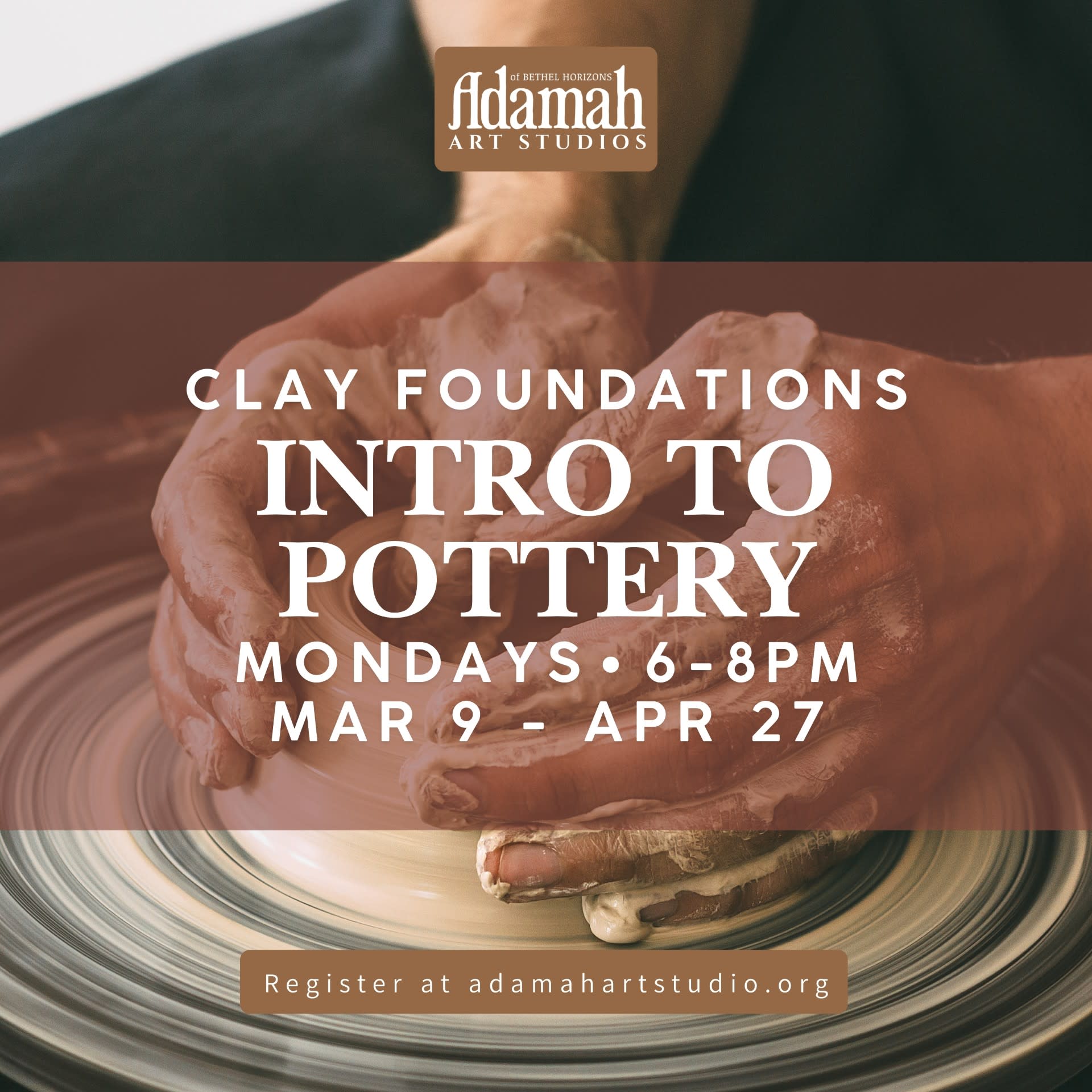 Clay Foundations: Intro to Clay (8 Week Class) https://www.adamahartstudio.org/gather/intro-to-clay/ Mondays – Mar 9 to Apr 27 Perfect for beginners! Learn the basics of both wheel throwing and hand-building while creating mugs, bowls, trays, lanterns, and more. You’ll become comfortable with clay tools, various forming techniques, and glazing to create a range of functional and decorative pieces. Your class fee covers: 8 Monday night sessions (see dates below), one 25 lb. bag of DSM clay, firing, glazing, and complimentary access to Open Studio hours for extra practice. Ages 14+ (minors must attend with an adult)