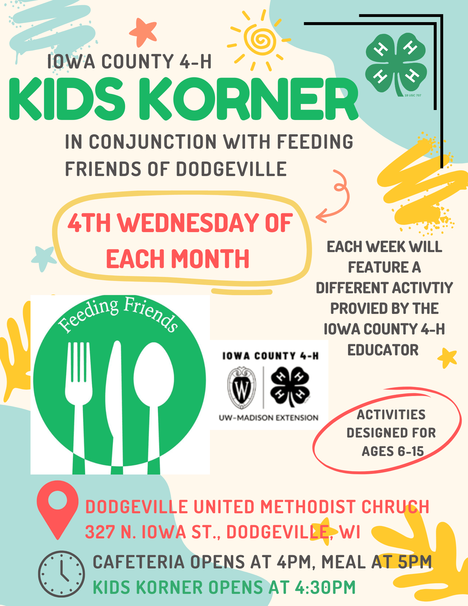 Iowa County 4-H Kids Korner in conjunction with the Feeding Friends of Dodgeville.